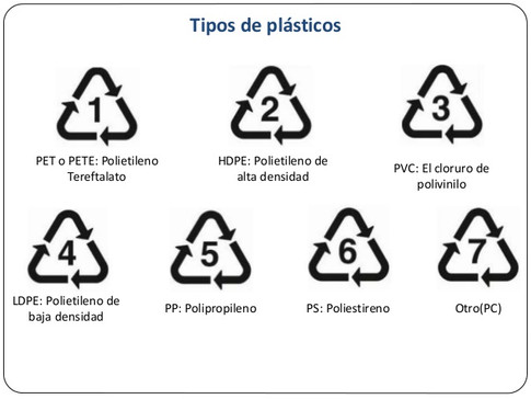 Polietileno tereftalato (PETE o PET): incluye las botellas plásticas transparentes de gaseosa y agua; en general se consideran aptas para su uso, pero no para su reutilización.